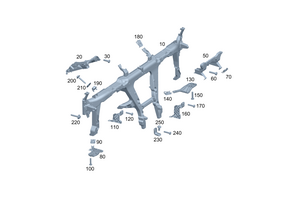 Crossmember to firewall. Firewall at bottom. Crossmember to a-pillar at left and right. Cross member to fire wall. Cross member to tunnel. Center console to front tunnel. Crossmember to tunnel. Screw, crossmember - A-pillar, instrument panel.